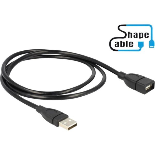 Cavo prolunga USB2.0 con filo modellabile interno che lo rende semirigido, capace di piegarsi in qualsiasi posizione e di mantenere la forma. E’ ideale per agevolare il posizionamento del connettore USB anche in spazi ristretti. Il cavo Shape Cable è molto resistente ed è difficile da annodare, piegare eccessivamente o rompere, a differenza di molti altri cavi USB.Caratteristiche• USB 2.0 tipo A Maschio a USB 2.0 tipo A Femmina• Prolunga la lunghezza del cavo USB • Velocità fino a 480 Mbps• USB 2.0 Hi-Speed per trasferimento dati ultra-veloce senza alterazioni del segnale• Shape Cable: con filo modellabile integrato per assumere la forma desiderata dall’utente e mantenerlaContatti• (1) USB 2.0 tipo A maschio• (1) USB 2.0 tipo A femminaSpecifiche tecniche• Diametro del cavo: ca. 5 mm• Sezione del cavo: – 28 AWG linea dati; – 24 AWG linea di alimentazione• Lunghezza: 35 cm• Colore: neroRequisiti di sistema• Una porta USB A liberaStandard e certificazioni• USB 2.0Contenuto della confezione• Cavo prolunga USB 2.0 da 35cm