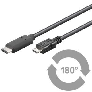• Cavo di sincronizzazione e ricarica USB• Velocità di trasferimento dati massima 480Mbit/s• Massima potenza 2,5 W• Connessioni: USB-C™ / USB Micro-B• Il connettore USB-C™ è reversibileConnettori• 1x Connettore USB-C™ Maschio• 1x Connettore USB Micro-B 2.0 MaschioSpecifiche tecniche• Velocità massima di trasferimento dati di 480 Mbit/s• Conduttore interno in rame• Configurazione connettore C > connettore MicroB• Standard USB 3.1 SuperSpeed• Lunghezza 1 m• Colore neroContenuto della confezione• Cavo adattatore da USB-C™ a MicroB 1m