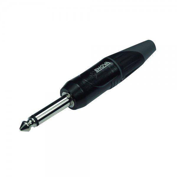 Connettore JACK 6.35 mm 1/4, maschio volante mono 2 poli, colore nero, pressa cavo grigio