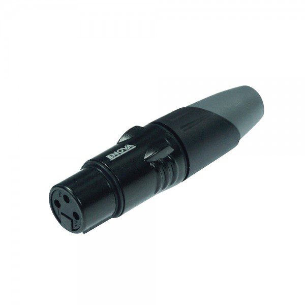 Connettore XLR 3 poli femmina volante, contatti a saldare, pressa cavo grigio per cavi da 3.3 a 7 mm.