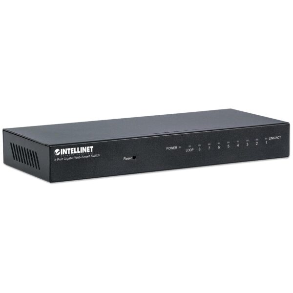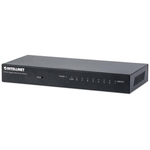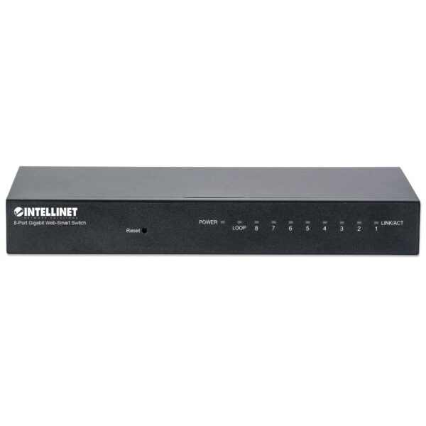 • Web smart desktop switch a 8 porte• Rilevamento automatico della velocità ottimale delle porte 10/100/1000 Mbps• La tecnologia di risparmio energetico permette di disattivare le porte inutilizzate e regolare i livelli di potenze a seconda della lunghezza del cavo• Tutte le porte RJ45 supportano Auto-MDIX (auto uplink)• Supporta Trunking, VLAN e QOS• Supporta mirroring delle porte• Controllo della larghezza di banda per tutte le porte fino a 6 livelli• Supporta controllo del flusso 802.3x per la modalità’ full duplex e backpressure collision-based per la modalità’ half duplex• Snooping IGMP riduce il traffico multicast sulla rete• Controllo broadcast e multicast• Rilevamento e prevenzione dei loop• Supporta jumbo frames fino a 9 kBytes• Supporta MAC address auto-learning e auto-aging• Supporta auto-negoziazione NWay• IEEE 802.3az (Energy Efficient Ethernet EEE) può essere disattivato• Architettura Store and forward switching• Opera in modalità full/half duplex• Aggiornamento firmware via HTTP e TFTPStandard• IEEE 802.1p (prioritizzazione del traffico)• IEEE 802.1q (Tagging VLAN)• IEEE 802.3 (10Base-T Ethernet)• IEEE 802.3ab (Rete Gigabit a coppie Twistate)• IEEE 802.3az (Energy Efficient Ethernet EEE)• IEEE 802.3u (100Base-TX Fast Ethernet)• IEEE 802.3x (controllo di flusso, per modalità full duplex)Caratteristiche generali• Supporta:- 10Base-T Cat3, 4, 5 UTP/STP RJ45- 100Base-TX Cat5 UTP/STP RJ45- 1000Base-T Cat5e UTP/STP RJ-45• Filtro di pacchetti / velocità di inoltro:- 1.488.000pps (1000 Mbps)- 148,800 pps (100 Mbps)- 14,880 pps (10 Mbps)• MAC address: 8192 ingressi• Buffer di memoria: 256 kB• Velocità in Backplane : 16 Gbps• Architettura switch: store and forward• 8 porte RJ45 Gigabit Ethernet• 1 x Pulsante ResetLED• Alimentazione• Link/ Attivita’ per porta• Rilevazione loopAlimentazione• Alimentatore interno: 100 – 240V AC, 50/60 Hz• Consumo di potenza: 3.57 Watts (massimo)Informazioni fisiche• Chassis in metallo• Dimensioni: 193 (L) x 84 (P) x 26 (A) mm• Peso: 0.94 kg• Temperature di lavoro: 0 – 50°C• Umidità di esercizio: 10 – 90% senza condensaCertificazioni• CE• FCC Classe B• LVD EN60950-1• VCCI• RoHS• RAEEContenuto della confezione• Web Smart Switch 8 porte Gigabit• Cavo di alimentazione• Guida d’installazione rapida• Manuale d’istruzioni