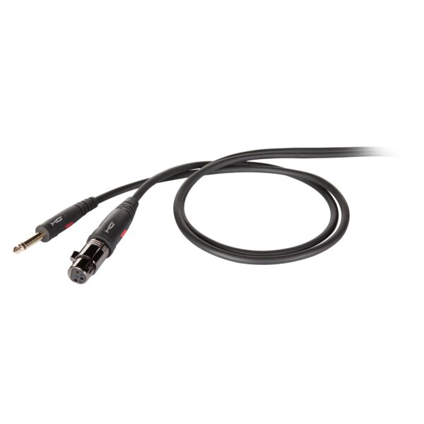 Cavo professionale sbilanciato con connessioni spina jack mono Ø 6.3 mm / presa volante XLR 3P. Lunghezza: 5 metri. Colore disponibile: Nero.