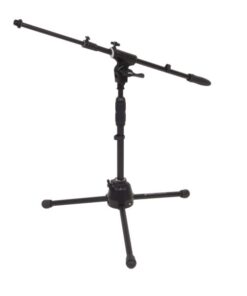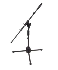 Asta microfonica professionale nana a giraffa telescopica, dotata di base tripoide e snodo superiore in alluminio pressofuso.