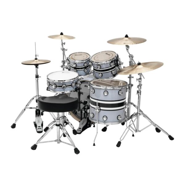 | Drums: | Bass-Drum (22″) approx. 55 cm x (18″) approx. 45 cm Snare-Drum (14″) approx. 35 cm x (5.5″) approx. 14 cm Tom (10″) approx. 25 cm x (9″) approx. 23 cm Tom (12″) approx. 30 cm x (10″) approx. 25 cm Floortom (16″) approx. 40 cm x (16″) approx. 40 cm |