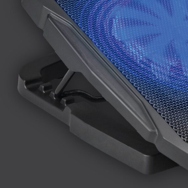 • Dissipatore adatto a tutti i laptop con dimensioni dello schermo fino a 17,3′.• Include 4 ventole (grandi: 125mm; piccole: 70mm) con LED blu.• Design ergonomico con cinque regolazioni dell’altezza per la massima comodità durante le sessioni di gioco e la visione di film.• Non è necessaria alcuna alimentazione esterna, non richiede l’installazione di software.Caratteristiche• Dimensione massima dello schermo del notebook: 17,3’• Dimensioni ventole: 2 x 125 mm; 2 x 70 mm• Velocità della ventola 1500 RPM ± 10%• Flusso d’aria (CFM) 21• Livelli di rumore (dBA) 21• Regolazione angolazione: 5 posizioni• Hub USB• Interfaccia USB 2,0• Tensione d’esercizio DC 5V (USB)• Materiale ABS + plastica PC con rete metallica• Retroilluminazione a LED di colore blu• Colore del supporto: neroDimensioni • Larghezza: 390 mm• Profondità: 280 mm • Altezza: 28 mm• Peso: 867 gContenuto della confezione• Stand dissipatore USB per notebook• Manuale utente