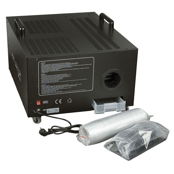 Quando viene collegato a qualsiasi macchina del fumo, il sistema di raffreddamento DNG-100 Fog produce uno strato basso di fumo il cui effetto è praticamente indistinguibile da quello creato dal ghiaccio secco. Il DNG-100 converte il fumo normale in una bassa nuvola di fumo bianco denso. Questa operazione viene eseguita raffreddando la temperatura del fumo prodotto da qualsiasi macchina del fumo regolare al punto in cui tocca la terra. Il DNG-100 è estremamente semplice da utilizzare poiché non non dispone di controlli esterni sulla macchina. È sufficiente collegare l’unità e posizionare il tubo che conduce il fumo dall’uscita di qualsiasi macchina del fumo all’ingresso del DNG-100. Basta collegare l’apparecchio per farlo funzionare immediatamente. Il volume di fumo prodotto viene controllato dalla macchina del fumo a cui è collegato il DNG-100. Con l’aggiunta del secondo tubo per la conduzione del fumo, il fumo basso può essere posizionato ovunque in un raggio di 10m dal ugello di uscita del DNG-100.