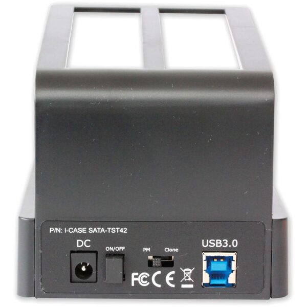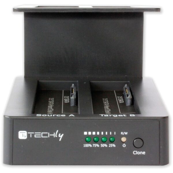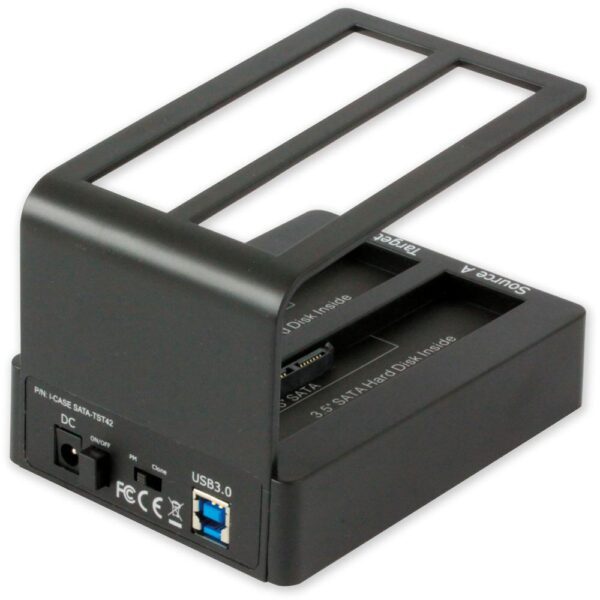 • Fornisce un accesso veloce ai dati, permette di creare un archivio portatile e semplifica il backup dell’hard-disk e i trasferimenti dei dati• Un tasto di clonazione permette di duplicare un HDD anche con PC/notebook scollegato• Doppio slot di inserimento per dischi rigidi SATA I/II/III da 3.5′ fino a 6TB e dischi SATA I/II/III da 2.5′ fino a 2TB• Con indicatori LED per trasferimento dati e accensione / spegnimento• Plug and playRequisiti di sistema• Porta USB 3.0 Standard-A disponibile• Compatibile Windows 2000/2003/XP/Vista/7/8/8.1/10• Compatibile Mac 10.0 o superioreVelocità di trasferimento• SuperSpeed USB fino a 5 Gbps e SATA fino a 3 GbpsDimensioni• Larghezza 9,5 cm• Altezza 8,5 cm• Profondità 12,5 cmCertificazioni• CE• FCC• RoHS• RAEEContenuto della confezione• Cavo USB 3.0 da 80 cm• Alimentatore 12V/3A• Staffa per HDD 2.5’• Manuale d’istruzioni