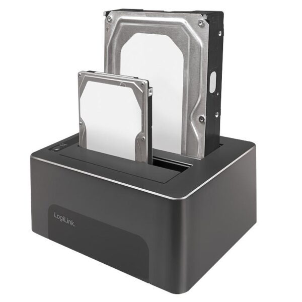 La Docking Station LogiLink USB 3.0 consente di collegare dischi rigidi SATA da 2,5 e 3,5 pollici al computer senza aprire il PC o utilizzare un enclosure per dischi rigidi esterni. Basta collegare il cavo USB incluso con il computer. Ora il disco rigido può essere collegato all’apertura superiore dell’attracco. Con LED indicatore di potenza e flusso di dati vengono visualizzati.Specifiche tecniche• Si collega a 2.5’/3.5′ SATA 1.5G / 3G / 6G HDD / SSD• Supporta HDD SATA da 2,5 ‘/ 3,5’ fino a 12 TB• Connettore HDD: femmina SATA• Tipo HDD: 2.5 ‘e 3.5’• Max. velocità di trasferimento: 5 Gbps• Alimentatore esterno incluso 12V / 3A• Funzionamento silenzioso, trasferimento dati sicuro e stabile• Interruttore di accensione / spegnimento e indicatore LED per attività HDDCompatibilità• Supporta Windows, Linux e Mac OSDimensioni• Larghezza: 14,8 cm• Profondità: 6,3 cm• Altezza: 10,8 cmContenuto della confezione• 1x Docking station USB3.0• 1x Cavo USB tipo A – tipo B• 1x Alimentatore 12V 3A• 1x Manuale utente