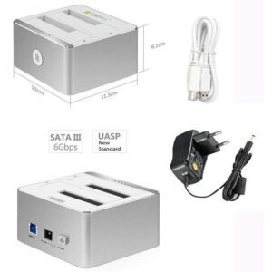 Docking Station USB3.0 Slot per 2 HDD SSD SATA 6G 2,5”/3,5” Alluminio