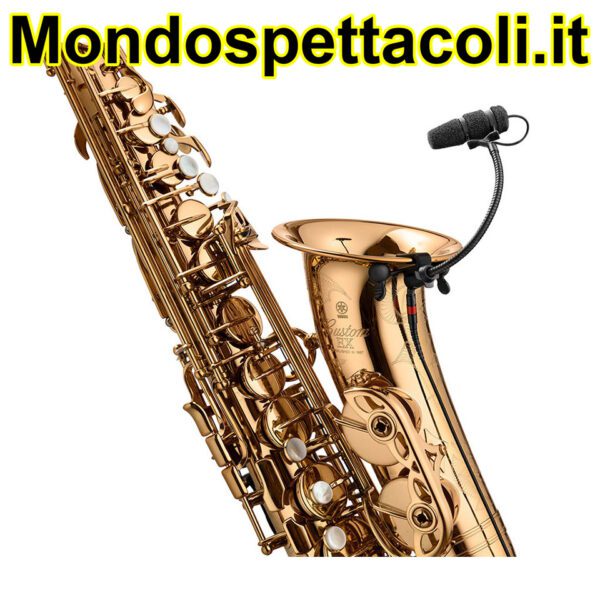 Clip per collegare un microfono da strumento 4099 a un sassofono o una tromba.