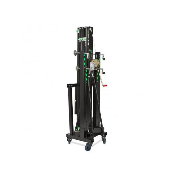 K-31 è una torre con sezioni più lunghe della K-30, in grado di sollevare ad un’altezza maggiore sistemi e strutture PA e line array. Monta 4 gambe con piattini in gomma antiscivolo regolabili.