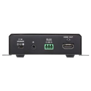 • Estensore HDBaseT Classe A HDMI con POH• Connettività HDBaseT – aumenta la distanza di una connessione HDMI tramite un cavo Cat 5e/6/6a• Supporta la modalità lunga distanza HDBaseT – fino a una portata massima di 150 metri a 1080p• Trasmissione HDMI 4k x 2k a una distanza fino a 100 m tramite cavo Cat 6a o ATEN 2L-2910 Cat 6• HDBaseT Anti-blocco – resiste alle interferenze del segnale durante la trasmissione di video con qualità elevata mediante la tecnologia HDBaseT• POH (Power over HDBaseT) – fornisce alimentazione dal trasmettitore al ricevitore a lunga distanza tramite un cavo Cat 5e/6/6a• Canale RS-232 bi-direzionale – consente il collegamento a terminali seriali o dispositivi seriali, ad esempio schermi touch e scanner di codice a barre• Canale IR bi-direzionale – protocollo IR bi-direzionale fornito da una porta IR; la trasmissione IR viene elaborata in una direzione alla volta• Installabile a rackIngresso video• Interfacce: 1 x HDMI di tipo A femmina (nero)• Impedenza: 100 Ώ• Distanza max.: 1,8 mUscita video• Interfacce: 1 x HDMI di tipo A femmina (nero)• Impedenza: 100 ΏVideo• Frequenza max. dati 10,2 Gbps (3,4 Gbps per linea)• Clock di pixel max. 340 MHz• Conformità HDMI (3D, Deep Color, 4K) • Compatibile HDCP • Consumer Electronics Control (CEC)• Risoluzione/distanza max.: fino a 4K a 70 m (Cat 5e/6) / 100 m (Cat 6a); 1080p a 100 m (Cat 5e/6/6a) *4K supportato: 4096 x 2160 / 3840 x 2160 a 60 Hz (4:2:0); 4096 x 2160 / 3840 x 2160 a 30 Hz (4:4:4)Audio• Uscita 1 x HDMI di tipo A femmina (nero)Controllo• RS-232 Connettore: 1 x Blocco terminali, 3 poli• Velocità in baud: 19200, Bit di dati: 8, • Bit di stop: 1, nessuna parità e controllo del flusso• IR 1 x Connettore mini stereo femmina (nero)Caratteristiche ambientali• Temperatura di esercizio: 0 – 40°C• Temperatura di conservazione: -20 – 60°C• Umidità: 0 – 80% di umidità relativa, senza condensaCaratteristiche fisiche• Struttura: metallo• Peso: 0.47 kg• Dimensioni (L x L x A) con staffa: 14.04 x 12.30 x 3.00 cm • Dimensioni (L x L x A) senza staffa: 13.60 x 10.10 x 2.90 cm Contenuto della confezione1x trasmettitore HDBaseT HDMI VE1812 con POH• 1x ricevitore HDBaseT HDMI VE1812 con POH• 1x alimentatore 0AD9-1F05-30EG• 1x 2XRT-0004G trasmettitore IR• 1x 2XRT-0003G-1 ricevitore IR• 2x blocchi terminale RS-232• 1x istruzioni per l’utente