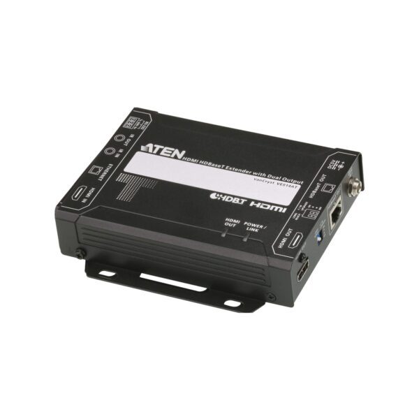 ATEN VE814A è un Estensore video HDBaseT in grado di inviare i segnali HDMI fino a 100 m tramite un singolo cavo Cat 5e/6/6a o ATEN 2L-2910 Cat 6. Grazie alle due uscite sincrone, il VE814A può trasmettere un segnale video a due schermi remoti e uno locale. L estensore conforme HDCP 2.2 soddisfa le specifiche HDMI, inclusi 3D, Deep Color, velocità massima dei dati di 10,2 Gbps e qualità video 4K fino a 100 m.