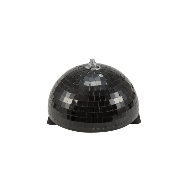 Mirror half ball with motorThe black EUROLITE mirror halfball with stable plastic core is ideal for your party rooms, dance schools and clubs. It also fits perfectly into your shop window. With the right lighting you can achieve decorative lighting effects.The mirror halfball is designed for ceiling mounting and is driven by a motor with 2.5 rpm. You can find the matching mounting bracket incl. dowels in the package.The power connection is established via the supply line with earthing contact plug.The mirror halfballs are available in different colors and sizes.