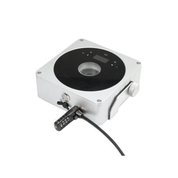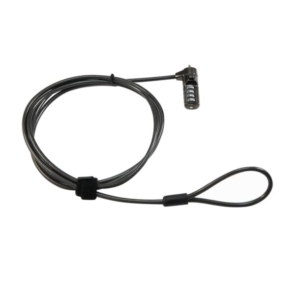 With this notebook lock you can secure different devices such as notebooks, projectors, screens and battery-operated devices. The 1.80 m steel cable with plastic coating and a 4-digit combination lock can easily be tied around objects such as trussing and the like to protect your device against theft.