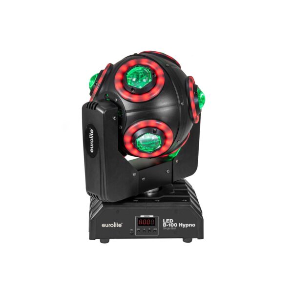 LED beam effect with RGBW color mixing and 8 RGB hypno rings