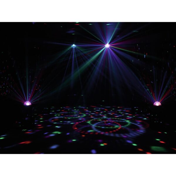 Compact mirror ball effect (RGB+orange+violet) with radiating plexiglas dome