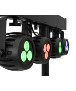 - Functions: RGBW color mixture, color presets, built-in programs, strobe effects with variable speed, dimmer, Master/Slave operation