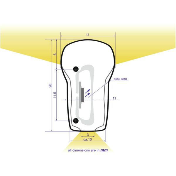| Light emission: | Top 12 mm Bottom 3 mm |