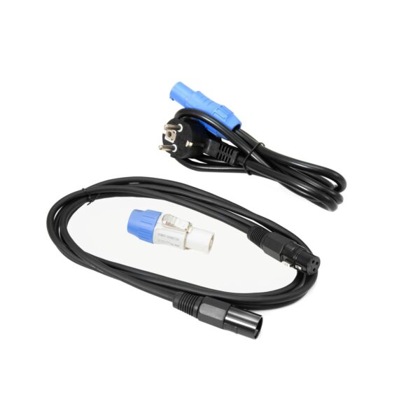 - 1 x device, 1 x user manual, 1 x power cord, 1 x xLR cable, 1 x plug (male), 1 x barndoor