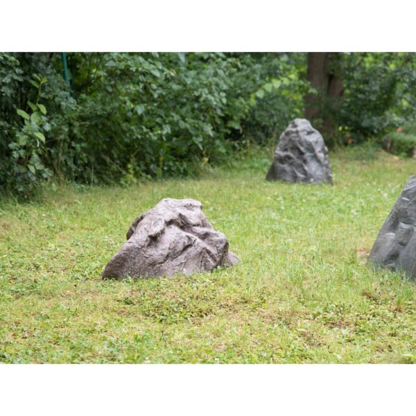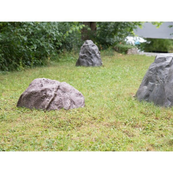 The decorative rock made of fiberglass-reinforced plastic is particularly light compared to real stones and is used wherever real rocks are too heavy: for example, in scenery construction and in room or shop window designs. Its hollow interior also makes it ideal as a cover for sockets, transformers or for pond pumps and filters outdoors.During production, special emphasis was placed on a natural color gradient of the imitation stone. Slight deviations in dimensions, structure and color are possible, as with real boulders.