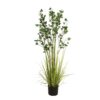 Set targeted green accents with the artificial evergreen shrub from Europalms.In the twinkling of an eye, you can create a pleasant atmosphere even in simply furnished office and living rooms.The branches of the evergreen spindle shrub protrude from a light green grass bush, whose PE leaves, graduated in length, already fall into shape by themselves when placed. The varying shades of green between the grass and the leaves of the shrub gives the plant a simple elegance and balanced appearance.The arrangement has a total height of about 182 cm and comes in a black gardener’s pot, which gives the plant a stable stand when placed in a planter. A deceptively realistic cover with artificial moss completes the lifelike appearance.