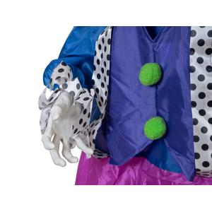 What makes a typical clown?At least the external characteristics, such as brightly colored clothes, oversized shoes and the typical make-up, also apply to Charly. But beware: he is neither humorous nor empathetic!With a height of approx. 164 cm, Charly is an imposing figure. With his colorful clothes and huge bow tie, he follows circus tradition, but his long hair in poisonous neon green is a clear warning. His white face with clown paint in bright, flashy colors reinforces his sinister aura. The open mouth reveals fangs that would do a vampire proud.During the animation, the eyes of the decorative figure flash red, the arms move and the head performs circular movements while Charly insults all visitors with wild curses (various voicelines).The animation of the decorative figure can be activated using the integrated microphone/light sensor, the “Step here” switch pad or wired, manual control.