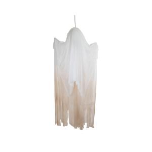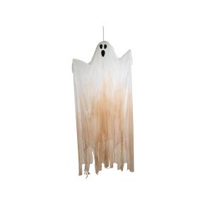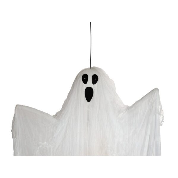 Ghosts and ghouls can’t be missing from any scary story. As lovable or as rather scary and sinister fellows, they belong to the basic equipment of every motto and Halloween party.The spooky ghost from Europalms is well prepared for its ghostly appearance.With its arms spread out, the eerie figure haunts your premises. Who is not yet frozen with fright by the wide open mouth and the huge eyes with color-changing flashing LEDs alone, should beware of the alternating ghostly voice or the terrible groans. In addition, the figure turns almost twice around its own axis and back again via a motorized mechanism. A drive wire, which is connected to both the motor and the hook of the suspension, guarantees the rotational movement. The figure is dressed in a typical multi-layered, frayed and holey robe in white, which looks dirty in the color gradient towards the bottom.The animation of the hanging figure is activated by integrated microphone . Her arms can be easily bent into shape.