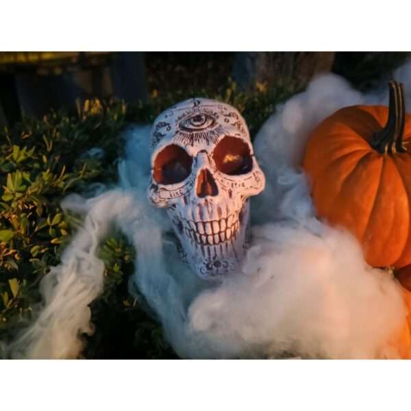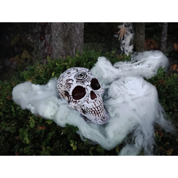 Immerse yourself in an enigmatic world full of magic and mysticism with this mysterious skull. Did it once serve as an occult instrument for those who wanted to cross the boundaries between worlds? The mystical skull from Europalms is not only an impressive piece of decoration, but also a source of inspiration at any theme or Halloween party.Mysterious runes and symbols cover almost the entire skull and each of these lines and curves seems to be charged with special powers and magic. What stories and mysteries does it hide? Does it come from the world of the druids, the majas or from a sorcerer?Let this fascinating artifact inspire you and your visitors. Explore the depths of the unknown together, because in this world there are no limits to the imagination.