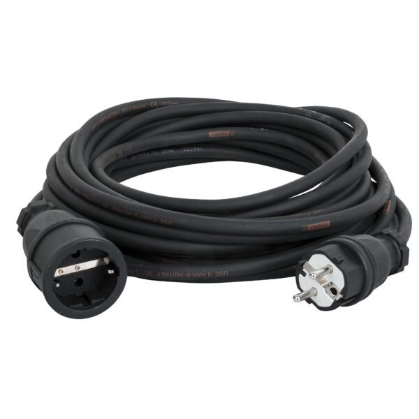 Prolungabile con Titanex 3x 1,5 mm² / AWG 14 H07 RN-F e connettore Schuko maschio e femmina PCE. (non adatto per prese di corrente BE e FR).