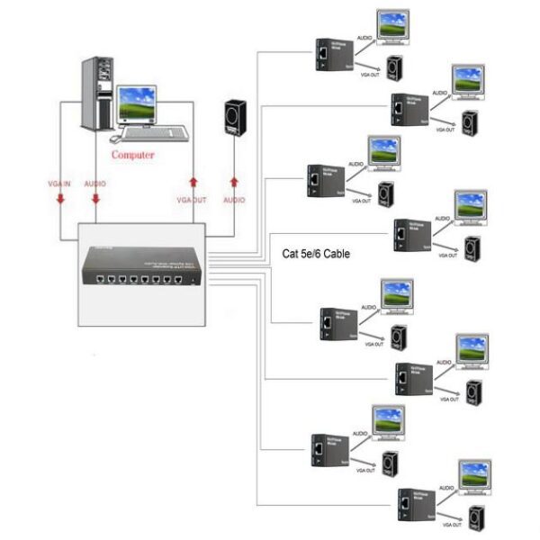Extender/ Splitter Audio / Video 8 Porte su Cavo Cat5E 300 m