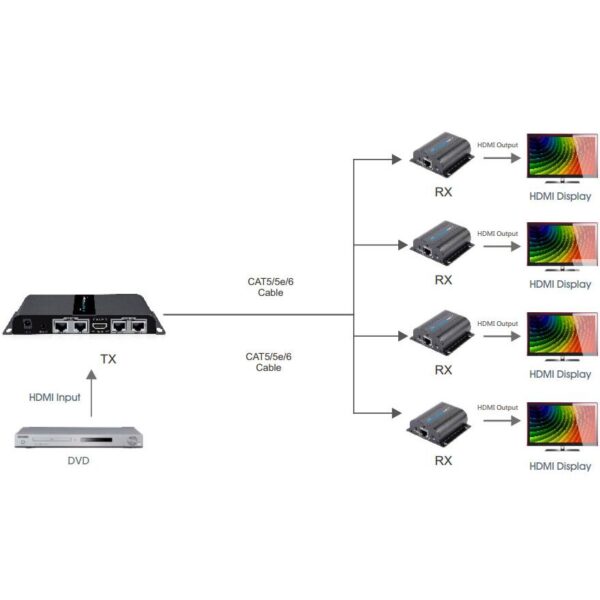 Extender Splitter HDMI 1×4 PoE con IR su Cavo Cat.6 fino 40m