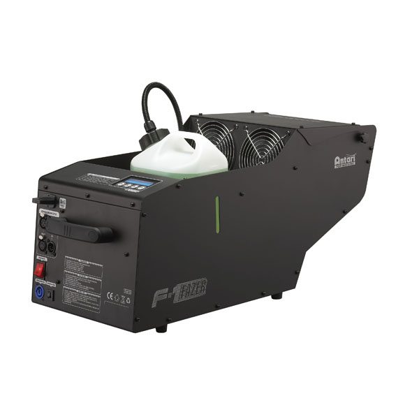 Lo sviluppo del sistema della pompa dell’aria permette di creare una miscela omogenea di liquido nebbia e aria per produrre nebbia fine e secca con un consumo minimo di fluidi. L’F-1 ha anche una funzione autopulente per prolungare la durata della caldaia. Può essere utilizzato manualmente ma anche con segnale DMX in tre diverse modalità: