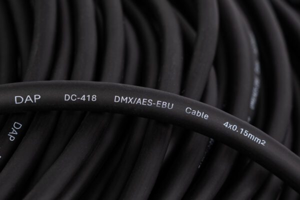 Il DAP FLN85 è un cavo DMX e AES/EBU di alta qualità, di livello professionale, con 4 fili di rame OFC da 0,15 mm² e un’impedenza di 120 ohm. Utilizza connettori XLR Neutrik NC5XXX-BAG 5P con contatti placcati in argento, per garantire connessioni a bassa impedenza, incontaminate e affidabili. Ogni coppia di fili ha una schermatura in alluminio e un filo di scarico in rame OFC per una trasmissione del segnale senza interferenze. Un’ulteriore schermatura a treccia di rame OFC stagnato tiene ancora più lontani i segnali di interferenza. Ogni cavo include una guaina trasparente termorestringente per una facile identificazione e una comoda chiusura a strappo per tenere in ordine le configurazioni. Il cavo DAP FLN85 è disponibile in diverse lunghezze.