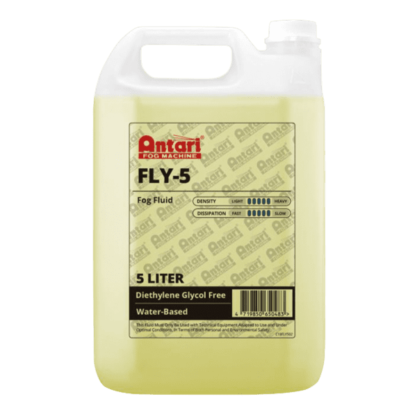 Il liquido per nebbia Antari FLY-5 è un liquido per nebbia a base d’acqua che produce una nebbia a densità molto elevata che dura a lungo. Se si vuole una nebbia più fitta, questo è il prodotto perfetto. Assicurarsi che la macchina sia in grado di gestirlo. Tutti gli ingredienti utilizzati nei liquidi Antari sono innocui e non classificati ai sensi della normativa CLP.