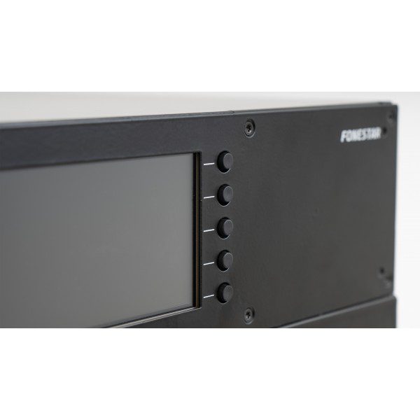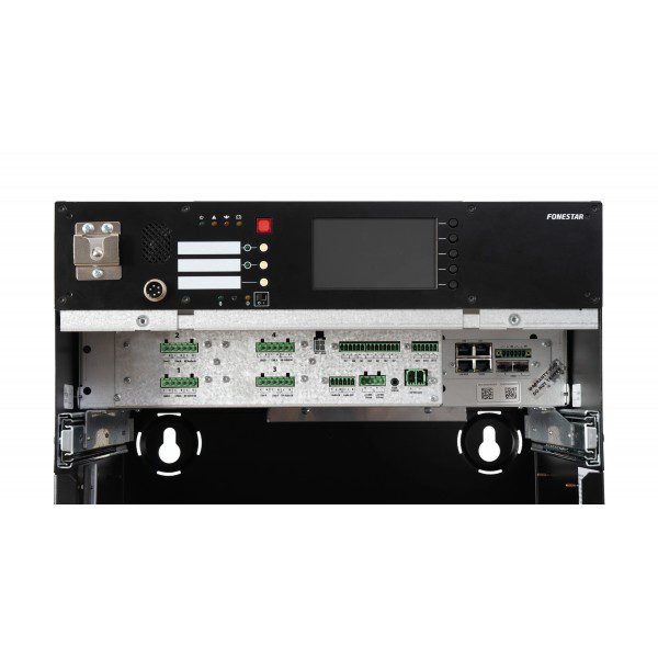 con collegamento in fibra ottica in topologia ad anello. Permette di espandere il sistema con centraline,