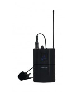 Microfono wireless da cintura con microfono a clip con capsula a condensatore unidirezionale.