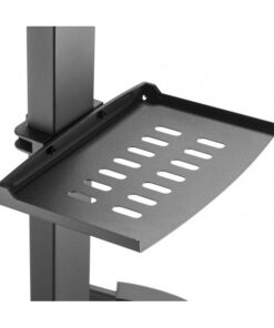 Il supporto è regolabile in altezza e inclinazione. Include un vassoio per apparecchiature multimediali.