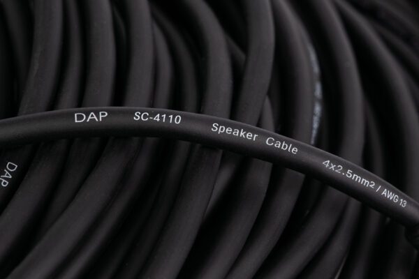 La serie di cavi per diffusore FSN di DAP è caratterizzata da cavi di alta qualità dotati di connettori Neutrik speakON. Questo cavo ha 4 conduttori in rame da 2,5 mm² per garantire una conduttività ottimale, mentre i connettori Neutrik NL4FXX-W-S hanno contatti placcati in argento per connessioni a bassa impedenza e di alta qualità, che garantiscono un’eccellente trasmissione del segnale. Ogni cavo include una guaina trasparente termorestringente per una facile identificazione e una comoda chiusura a strappo per tenere in ordine le configurazioni. Il cavo DAP FSN per diffusore è disponibile in diverse lunghezze.