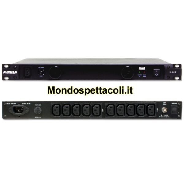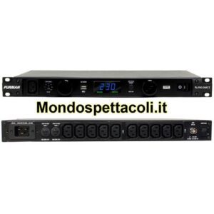 Distributore Condizionatore di rete 230VAC con 11 prese IEC di cui una frontale e 10 posteriori ( divise in due linee da 5, separate fra loro, antiinterferenze fra gruppi di apparecchi) in 1 unità rack
