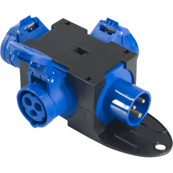 Box di distribuzione elettrica, input spina 16A 3p, prese output: 3x16A 3p