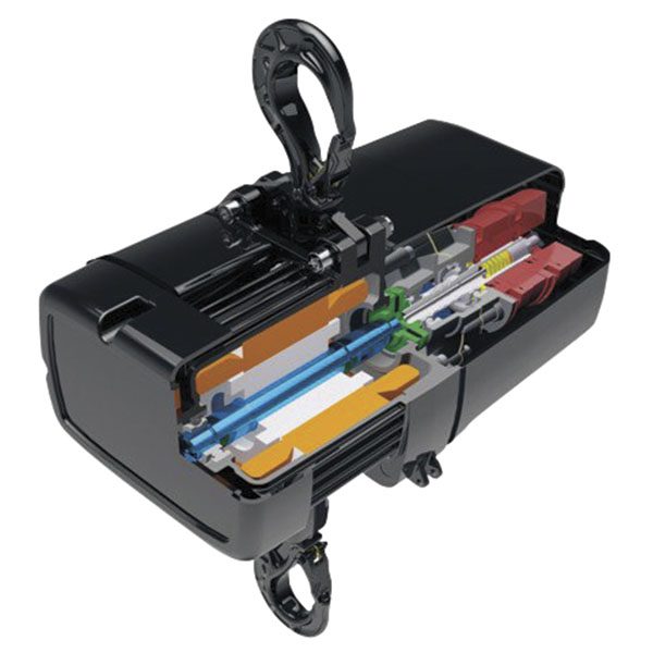 Due sistemi frenanti indipendenti e un fattore di sicurezza 8:1 consentono alle persone di stare sotto il carico senza un dispositivo di sicurezza secondario. Grazie al comando diretto, i paranchi a catena possono essere facilmente combinati come paranchi di gruppo. Il paranco a catena è conforme alla norma BGV D8+ come paranco a catena modulare per il sollevamento di carichi. La capacità di sollevamento è di 0,5 t in un paranco a catena monogiro. I paranchi a catena sono perfettamente adatti sia per l’uso mobile che all’esterno. Le posizioni di fine corsa superiore e inferiore possono essere regolate individualmente e con precisione. Il gancio di carico bloccabile opzionale impedisce che il carico scivoli accidentalmente dal gancio di carico.