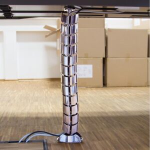 Guaina raccoglicavi di alta qualità per scrivania, ideale per mantenere in ordine la postazione di lavoro. La lunghezza della guaina può essere regolata rimuovendo le singole articolazioni. La canalina viene avvitata alla parte inferiore della scrivania e il pesante piede di appoggio assicura un saldo posizionamento a pavimento.Caratteristiche• Passacavi verticale sotto scrivania• Lunghezza regolabile all’altezza del tavolo• Misura: 720 x 75 mm (15 articolazioni)• Ogni giunto misura 75 x 45 mm (L x H)• Materiale: ABS• Base con pezzo di metallo• Colore: Silver