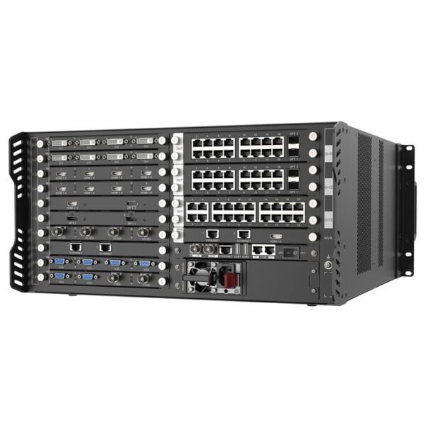 La serie H di Novastar è destinata ad essere utilizzata in installazioni fisse con schermi LED di grandi dimensioni e a passo fine. L’H5 è una soluzione all-in-one che combina le funzioni di splicing video con la gestione dei LED in un unico alloggiamento. Il design modulare funziona con moduli plug-in sostituibili a caldo che permettono una configurazione flessibile delle schede di ingresso e uscita. È disponibile una varietà di moduli connettore che forniscono i connettori d’ingresso standard del settore, in modo che il sistema possa essere ottimizzato per l’installazione prevista.
