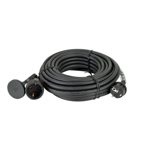 Questo cavo di prolunga Schuko H07RN-F 3G1.5 ha una classificazione IP44, il che significa che è protetto dalla polvere e da getti d’acqua. Viene fornito con un terminale di chiusura.
