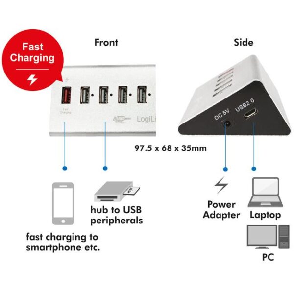 Hub USB 5 Porte in Alluminio con Ricarica Veloce