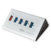 • Connette dispositivi di tipo C a quattro porte USB SuperSpeed di tipo A per periferiche aggiuntive• Le porte USB-A SuperSpeed (5Gbps) ricaricano fino a 5V/1A• Protezione da sovracorrente; removibile a caldo• Indicatore di alimentazione LED• Plug and playCaratteristiche generali• Velocità di trasferimento dati: 5 Gbps• 1 porta upstream con cavo integrato, standard C maschio• 4 porte downstream, standard A femmina• Fino a 1A in uscita• Alimentato tramite USB• Protezione da sovracorrenteConnessioni• USB-C™, 24 pin, maschio• 4 USB-A, 4 pin, femminaInformazioni fisiche:• Cavo AWG 24• Lunghezza cavo: 20 cm• Voltaggio: 300 V DC• Resistenza dell’isolamento: 10 MΩ• Resistenza dei conduttori: 5 Ohms• Alloggiamento: plastica ABS• SchermatoCaratteristiche ambientali• Temperatura operativa: 0 ~ 40°C• Temperatura di stoccaggio: -20 ~ 60°C• Umidità: 5 ~ 90%Sistemi richiesti:• Windows XP/Vista/7/8.1/10, Linux or Mac 9.x/10.x o superioreDimensioni• Larghezza: 89 mm• Profondità: 38 mm• Altezza: 10 mm• Peso: 31 gStandard e Certificazioni• USB• FCC• CE• RoHS2• RAEEContenuto della confezione• Hub SuperSpeed USB-C™• Manuale utente