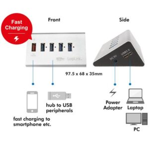 Hub USB3.0 5 Porte in Alluminio con Ricarica Veloce