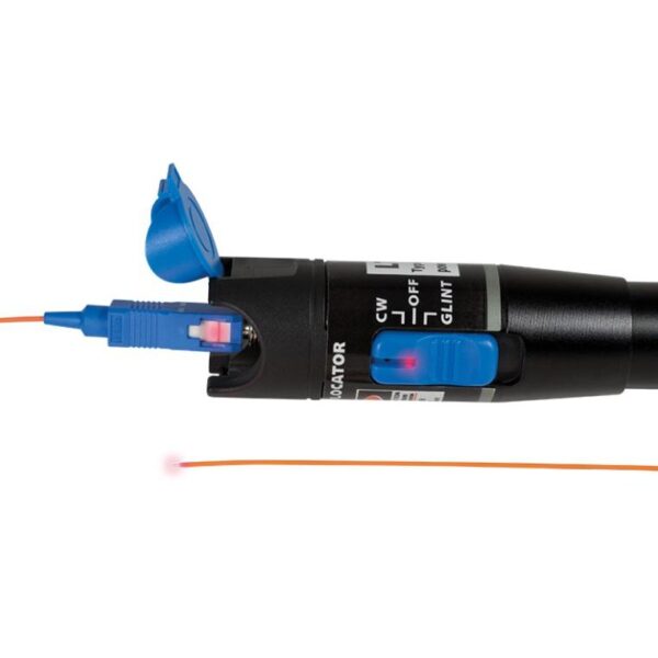 Il compatto localizzatore visivo di guasti ILWL-FO-FAULT può identificare il punto d’interruzione, il piegamento o il cracking della fibra ottica, sia multimodale che monomodale. E’ in grado di individuare anche il guasto della zona morta dell’OTDR e identificare la fibra da un’estremità all’altra.• Identificazione visiva e localizzazione di difetti nelle fibre di vetro• Ghiera da 2,5 mm + adattatore da 1,25 mm per LC, SC, ST, FC, LSH, DIN• Portata fino a 10 km, autonomia fino a 40 ore• Robusta custodia in alluminio, 175x30x30 mm, nera• Lunghezza d’onda e potenza: 650 ± 20 nm, 10 mW (max 18 mW)• Alimentazione: 2 batterie AA, non incluse• Accessori: custodia portatile in nylon