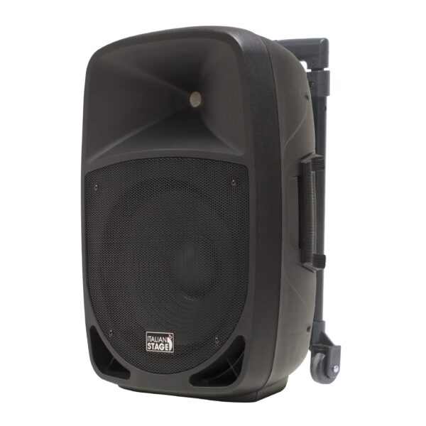 12’’ portable speaker with battery, MP3 player, SD card, USB, STEREO bluetooth, 2 x UHF wireless microphone (863 – 865 Mhz)
